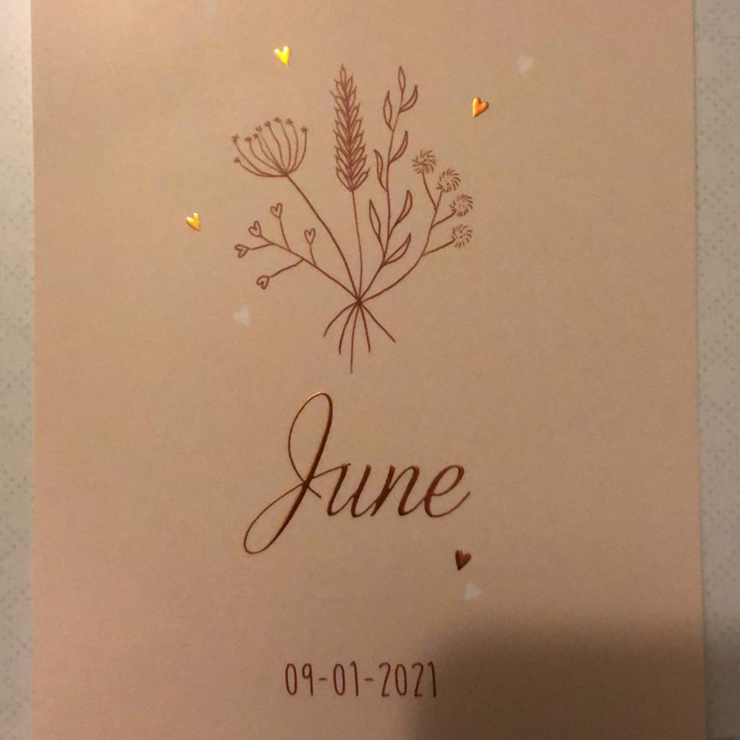 Wat ben jij een fantastisch mens! Wij hebben een geweldige kraamweek gehad. June en ik hadden een lastige start, maar jij wist precies wat ik nodig had, zonder daar naar te vragen. Een luisterend oor, een fijn gesprek en heel veel goede adviezen. Niets was je teveel! Je hebt ons zoveel geleerd over het ouderschap in korte tijd. Ook was je ontzettend lief voor June. Een top kraamhulp, die wij iedereen aanbevelen. Je hebt een speciaal plekje in ons hart, en die raak je nooit meer kwijt. Mocht er een tweede kindje komen, dan ben jij de eerste die wij bellen. Ik hoop dat we contact blijven houden.